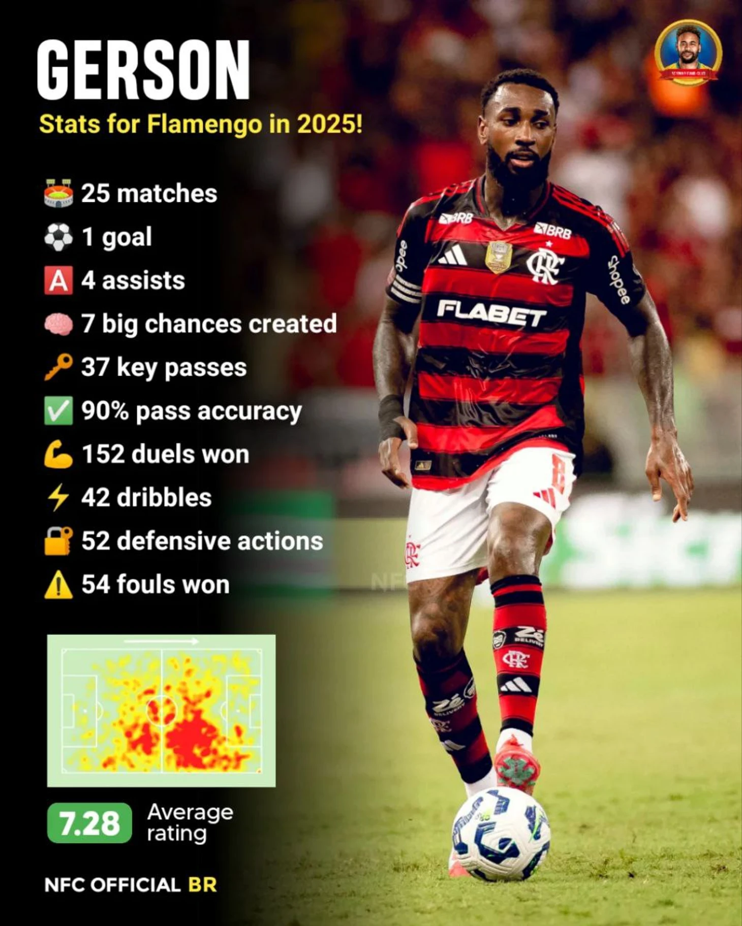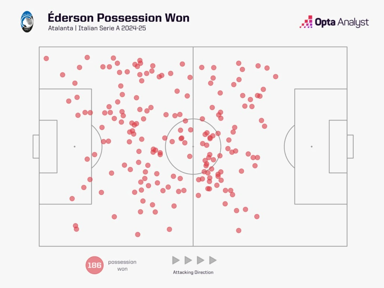 Помимо того, что Эдерсон забил четыре гола, он стал вторым по количеству владений мячом в Серии А среди полузащитников в этом сезоне (186), в то время как только трое выиграли больше единоборств (181), и только четверо сделали больше передач (1932).