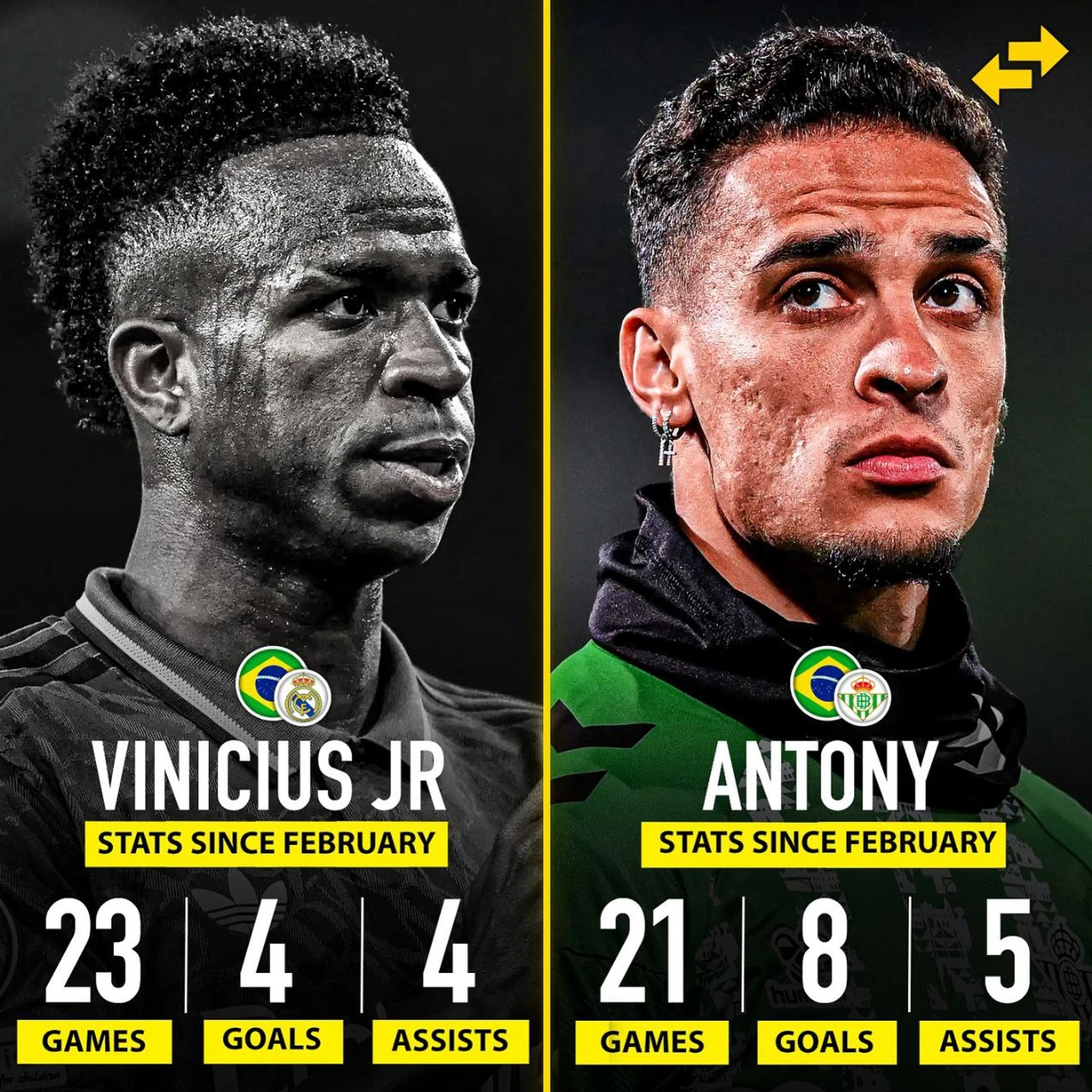 У Рафиньи аналогичная ситуация, но и вес и значимость Рафы в Селесао все же повыше. Кто заменит форварда «Барсы» в матче с Эквадором? Скорее всего вернувшийся к жизни в «Бетисе» Антони. Не открою секрет, если скажу что парень в огне. Тот же Винисиус провел последние 3 месяца клубного сезона 2024/25 послабее в плане результативности.
