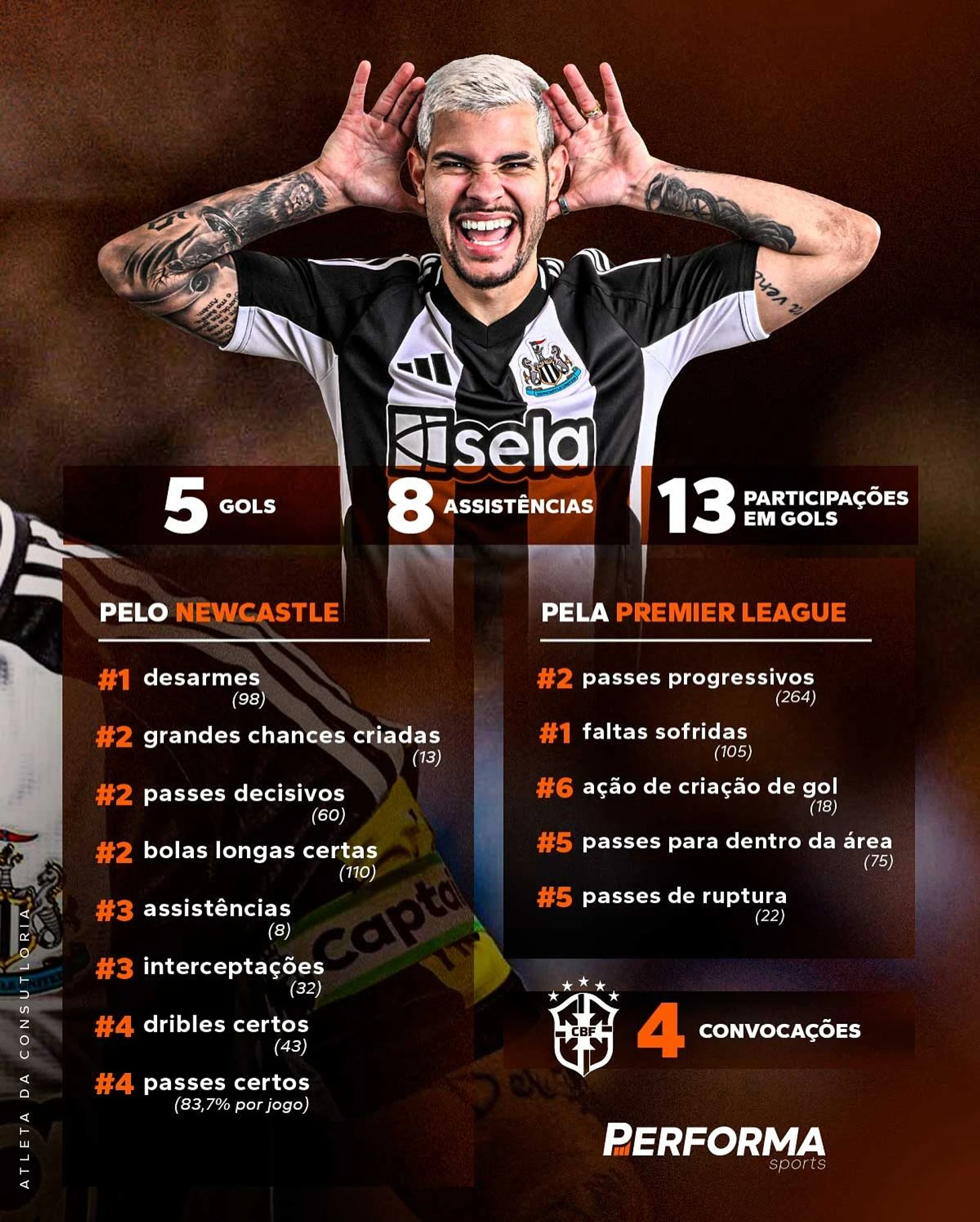 «Это радостный момент — впервые попасть в сборную Бразилии. Я действительно счастлив. Здесь, дома, в кругу семьи, мы все были очень взволнованы этим моментом. Я упорно трудился для этого. Слава Богу, сегодня мне выпала честь принять этот вызов. Я действительно счастлив. Спасибо всем, кто меня поддерживал, всем, кто мне помогал, — сказал защитник.