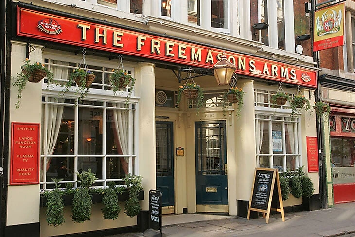 Формально первый футбольный паб Лондона, да и всего футбольного мира – The Freemasons Arms. В нем [на самом деле, в здании масонской ложи через дорогу] придумали правила футбола. Наверняка после этого основатели FA выпили по пинте – и не одной – пива.