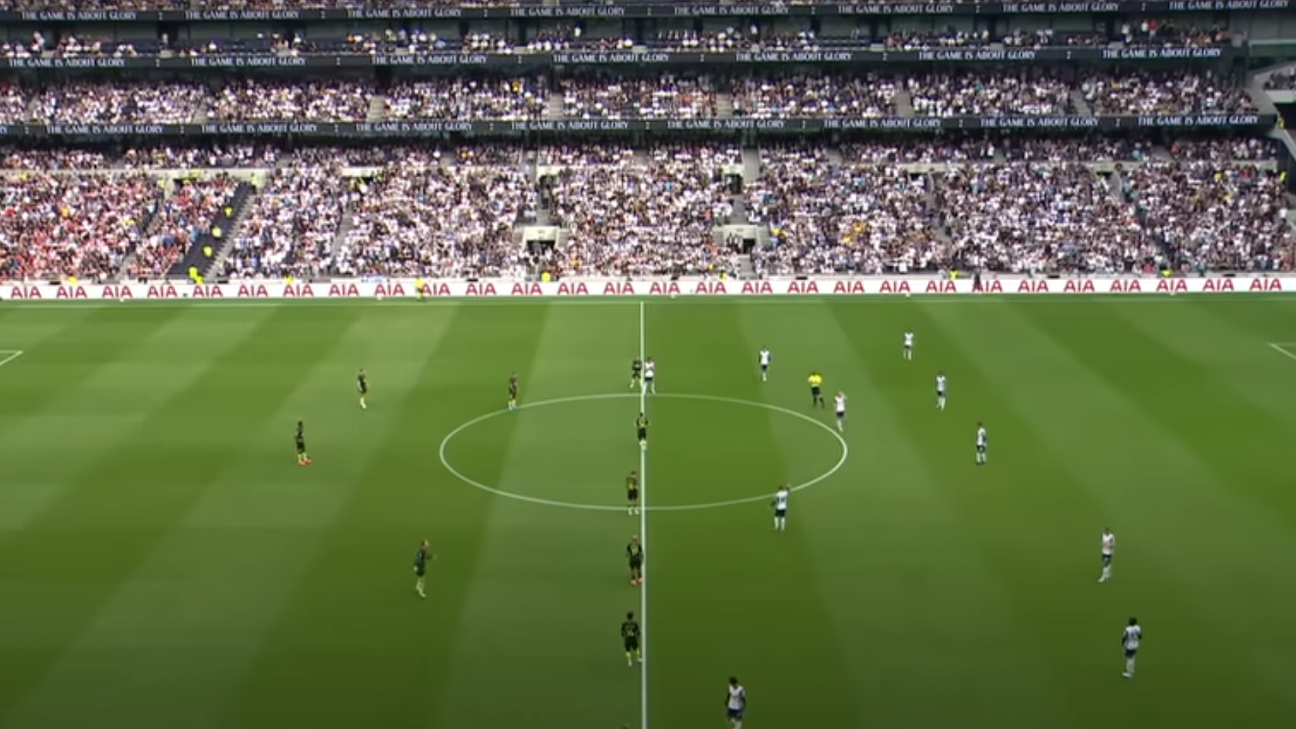 А вот как это выглядело в матче против «Тоттенхэма». (11-й игрок «Брентфорда» находится в нижней части экрана.)