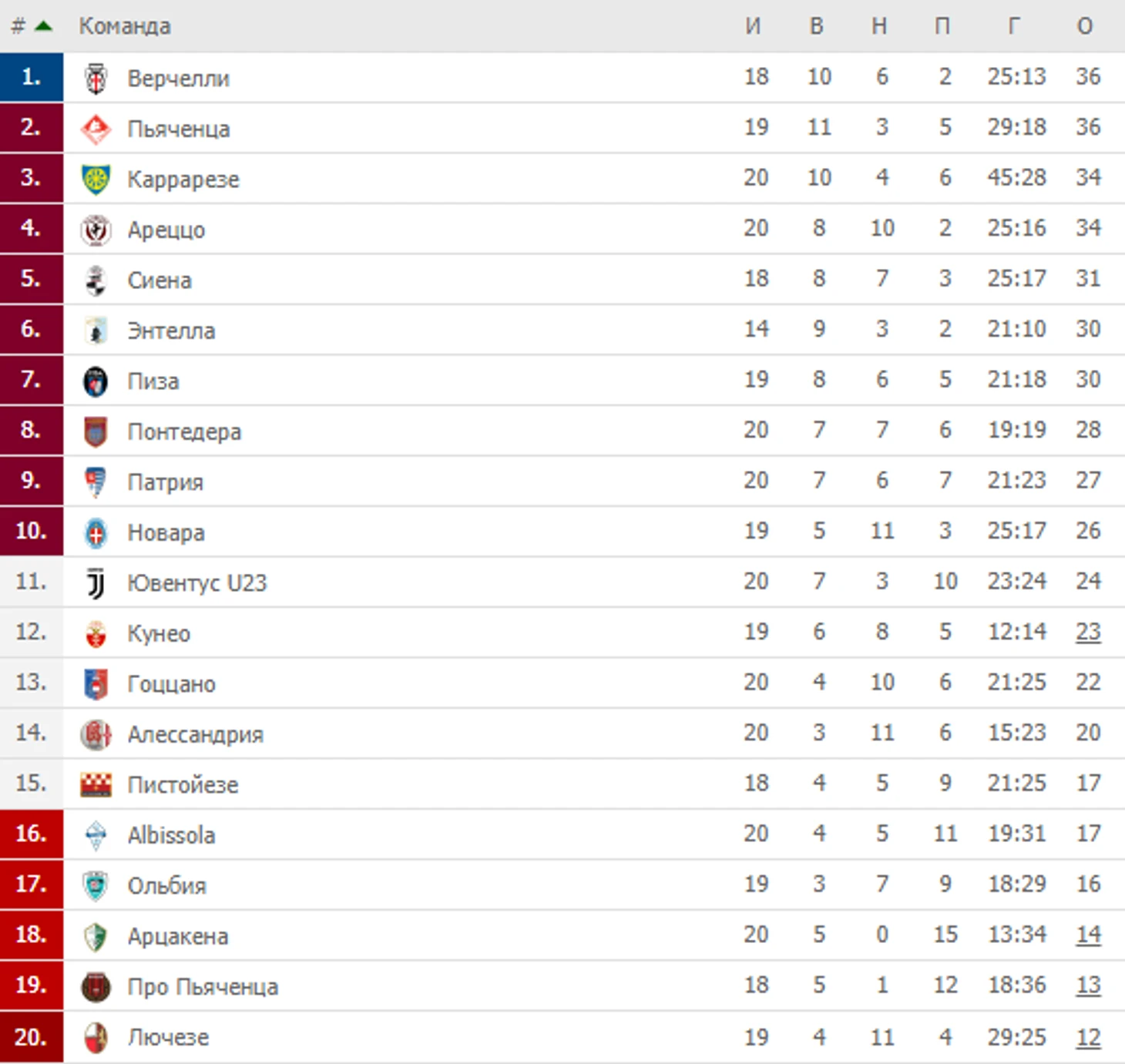 Теперь к самим результатам: из-за неравного количества матчей у команд нельзя сказать, что у «Юве Б» «железное», но всё же 11-е место. До зоны плей-офф (куда попадают места со 2-е по 10-е из каждой группы и победитель локального кубка, а потом 28 клубов «рубятся» за 1 путёвку) не больше 3 очков, до зоны стыковых матчей - не меньше 5. Прямой вылет почти наверняка не грозит: «Про Пьяченца» из-за забастовки (зарплаты не платят с осени) не явилась уже на 3 матча. Ещё пропуск, и снятие с чемпионата. Так что, ситуация вполне неплохая.