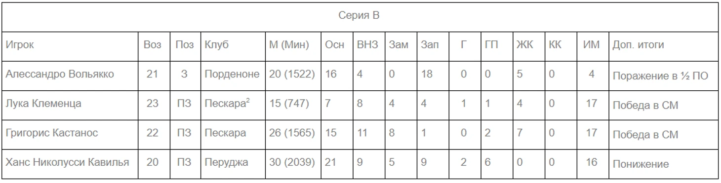 Григорис Кастанос Возраст: 22 Позиция: центральный полузащитник Клуб: «Пескара» Сезон 19/20: 26 матчей, 2 голевые передачи, 7 ЖК