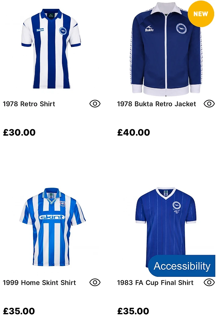 Ну а за 35 фунтов (около 4500 рублей) стерлингов вы можете купить домашнюю футболку, в которой футболисты играли в 1999 году или легендарную футболку, в которой наши футболисты вышли на финал Кубка Англии 1983 года.