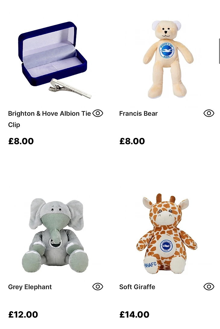 Фан-шоп «Брайтона» делится на два больших раздела: 1) мужская и женская форма (фото этого раздела представлено сразу после данного абзаца) и 2) раздел представляет из себя 4 группы: новинки, ретро форма и костюмы «Брайтона», сувениры и аксессуары. Я расскажу о товарах каждой группы, кроме самих новинок (так как они представлены в других группах).