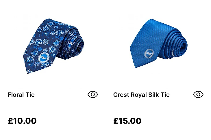 Затем идут галстуки в цветах и с эмблемой «Брайтона». Стоят они очень недорого. Всего лишь 1000 и 1500 рублей соотвественно. Разумеется, на важное совещание в таком галстуке не пойдёшь, но вот на карнавал или на футбол вполне себе.