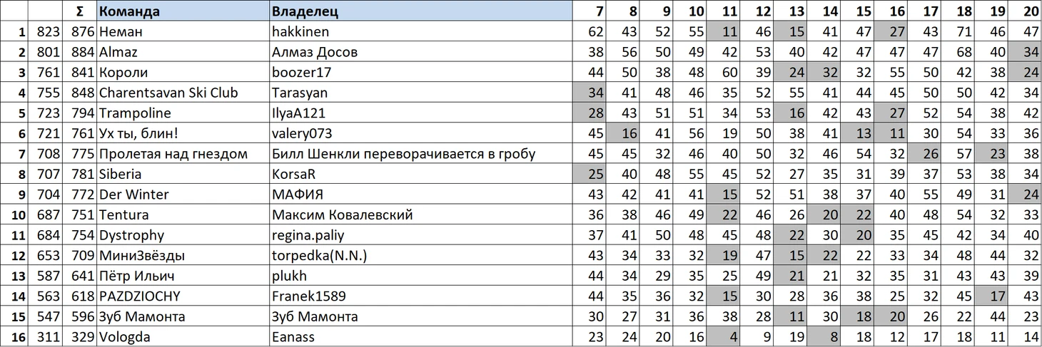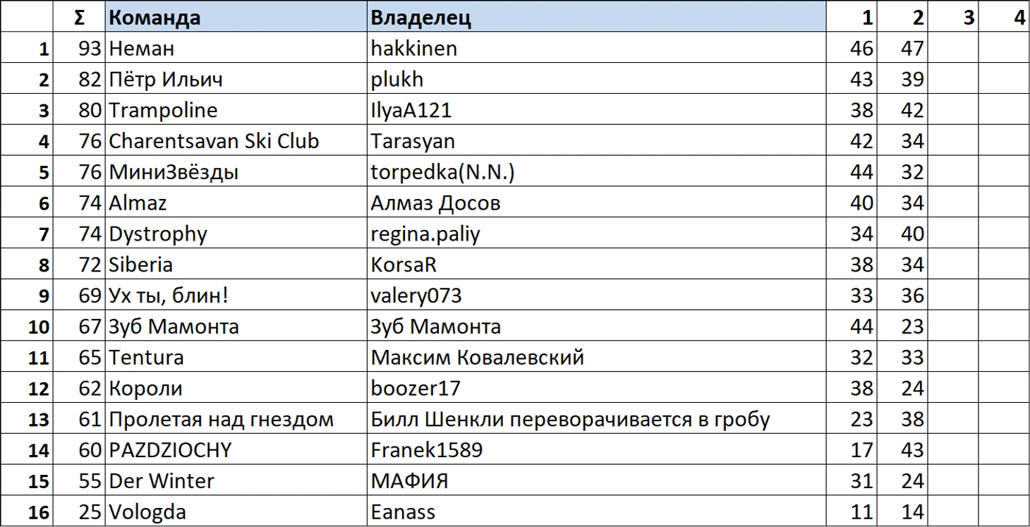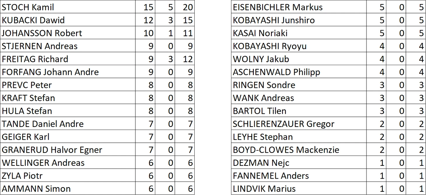 Бонусы за квалификацию: Стох - 3 очка, Кубацки - 2 очка, Йоханссон - 1 очко
