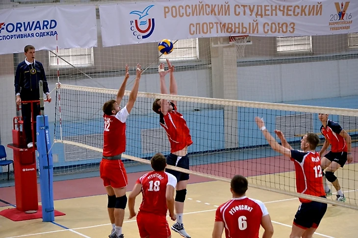 Фоторепортаж с полуфинальных матчей у юношей по волейболу, проходящих в рамках V Всероссийской летней Универсиады 2016 года в Белгороде. В полуфинальных матчах сошлись команды ПГАФКСиТ из Казани, СибГТУ из Красноярска, РГУФК и МАДИ из Москвы.