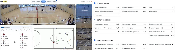 Камера следит за игроками и мячом, фиксирует события на поле, транслирует игру, пишет, собирает и хранит аналитику. Это решение позволяет снимать матч и адаптировать видеопоток под разные задачи: зрители смотрят живую трансляцию с фокусом на ключевых моментах, а тренерский штаб и аналитики работают с тактическими видео-нарезками.