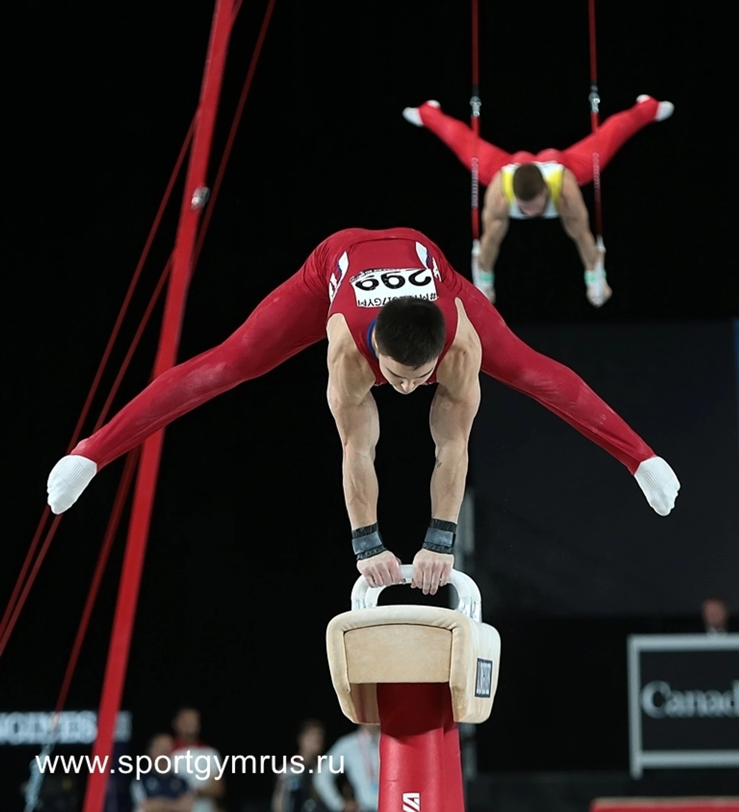 Белявский начинал с вольных. Неплохо, но выход за ковер и потеря 0.1 балла. Затем великолепное выступление на коне и очень хорошо исполненная комбинация на кольцах. На мой взгляд, Давида прижали на вольных.