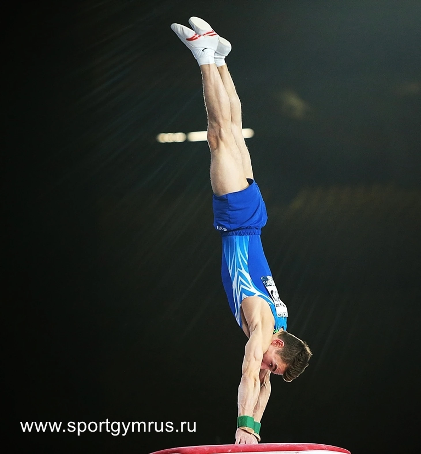 Давид Белявский… На этом снаряде он берет классом исполнения. И начало отличное, два перелета исполнены без помарок, а на третьем Давид не успевает ухватиться за палку. Всё. За падение снят один балл, оценка 13.200/5.6. Сумма 86.315.