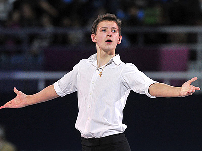 Первые трое особого интереса не представляли. Четвертым катался Ричард Дорнбуш. Начал он с двух ошибок, да и потом тоже грязи хватало. Оценка удивила: 145.99 (76.61+70.38). Потом посмотрел, за что ж ему такое счастье привалило. Оказалось, он прыжки поставил в основном на вторую половину программы, и база у него оказалась выше, чем у Ковтуна! Дорнбуш стал лидером – 218.57. Его не смог обойти Флоран Амодио, заваливший прыжки – 136.64 (60.08+76.56) и сумма 213.39.