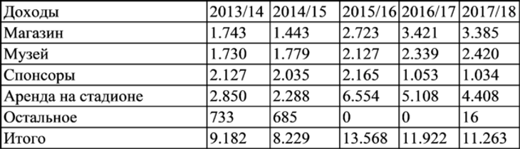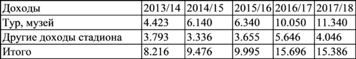 В целом, в течение пятилетнего периода средняя сумма составляла около 43 миллионов евро в год, что связано с присутствием болельщиков на матчах, проводимых на стадионе.