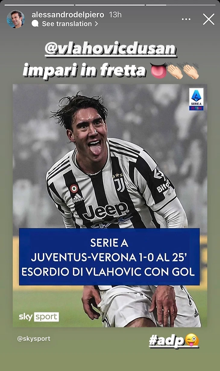Итальянская пресса перед матчем добавила челленджа, вспомнив, кто из звездных нападающих забивал в своем первом матче за «Юве»: Сивори, Манджукич, Дибала. Италия следила, сумеет ли Душан попасть в этот список. Влахович не тянул с интригой и уже на 13-й минуте изящно перекинул вратаря «Вероны».