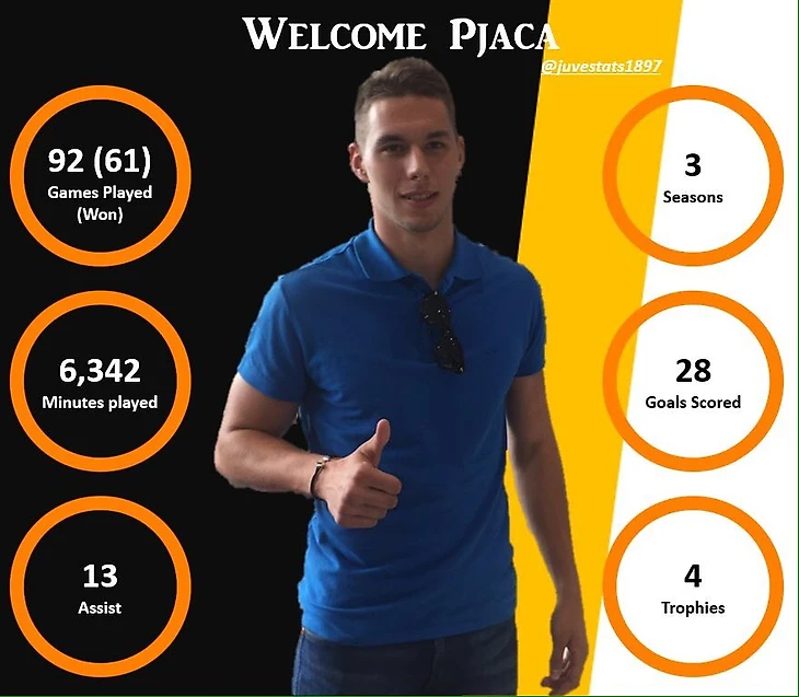 Состав «Ювентуса» пополнид 21-летний хорватский полузащитник Марко Пьяца. Сумма трансфера 23 миллиона евро(Сумма будет выплачена «Ювентусом» за два года, по 11.5млн евро в год соответственно). Контракт рассчитан на 5 лет, с зарплатой 1.8 млн.евро в год.