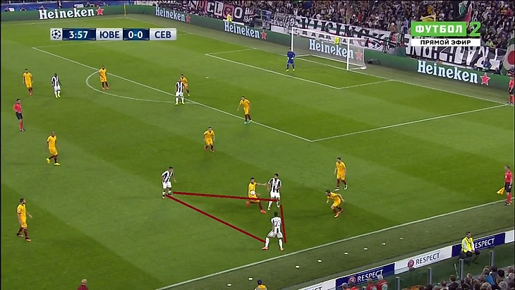 Дибала старался играть глубже, образуя справа атакующий треугольник с Хедирой и Алвесом.