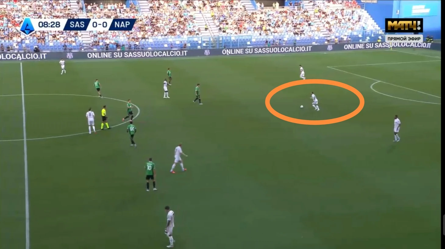 У неаполитанцев мяч разыгрывали в основном не центральные защитники, а полузащитники, Лоботка, Замбо Ангисса, иногда Де Брюйне, цз расходились в сторону и в основном не участвовали в продвижении мяча.