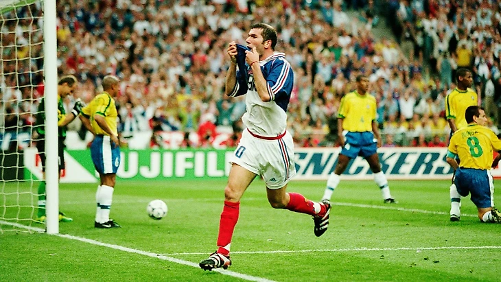 Французы легко выиграли группу с Данией, ЮАР и Саудовской Аравией, со скрипом прошли Парагвай в 1/8 (против блиставшего вратаря Чилаверта помог только "золотой гол" Блана) и по пенальти обыграли Италию с Баджо в четвертьфинале. В 1/2 благодаря дублю защитника Тюрама Франция обыграла сенсационных дебютантов хорватов, а в финале их ожидали действующие чемпионы бразильцы с зубастиком Роналдо. Правда, главная звезда "селесао" прямо перед матчем пережил то ли приступ, то ли отравление - его плохая форма в финале до сих пор остаётся загадкой. А вот главная звезда французов - Зидан - в финале был в невероятной форме, забил дубль и стал главным лицом первого золота ЧМ в истории Франции. Та команда отличалась не только высоким классом состава, но м удивительным свойством каждого игрока включаться в самый нужный момент - Блан в 1/8, Анри на групповом этапе, Тюрам в полуфинале и Зидан в финале.