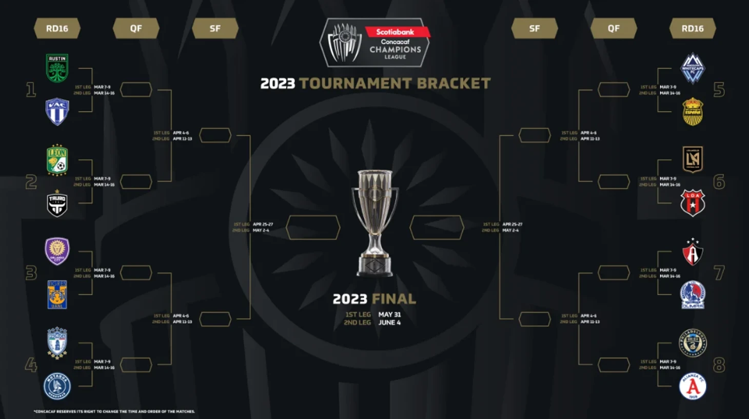 В турнире 5 команд представляют MLS (4 США и 1 Канаду), 4 Мексику и еще 7 остальной континент.