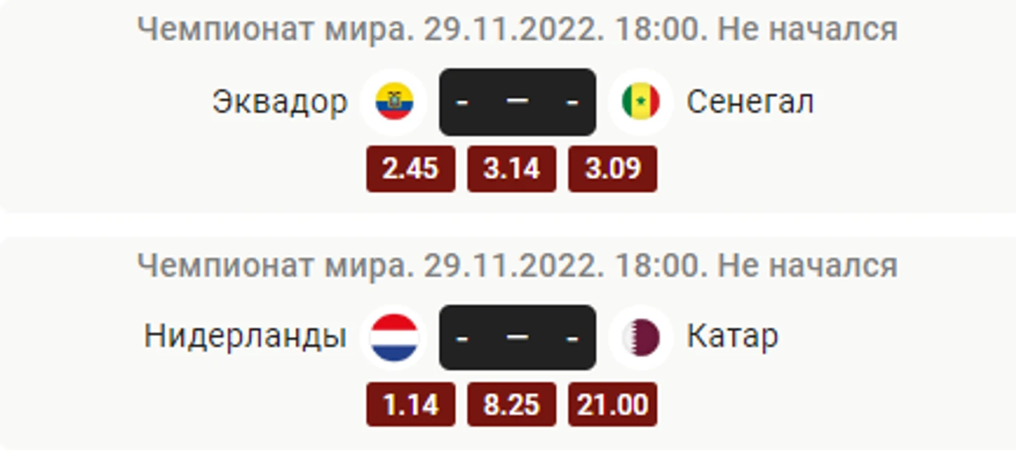 Голландия не проиграет Катару идет с крошечным кэфом 1,008