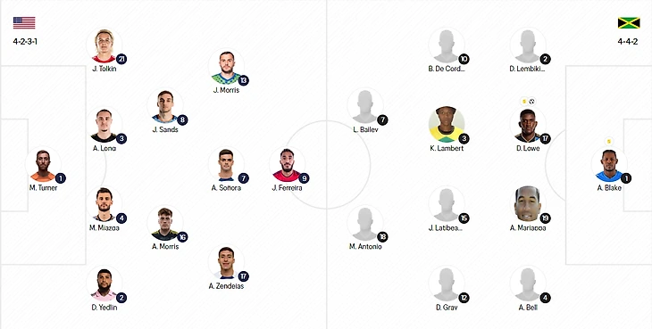 Взгляд на стартовый состав не оставлял сомнений (впрочем, это было понятно с момента публикации вызванных на турнир игроков), что перед нами, скажем так, ближайший резерв. На чемпионате мира из 11 игроков полноценно сыграл только Тернер. Йедлин и Джордан Моррис (не путать с Эйденом) сыграли суммарно чуть больше получаса. И тот же Тернер единственным из старта представлял европейский клуб.