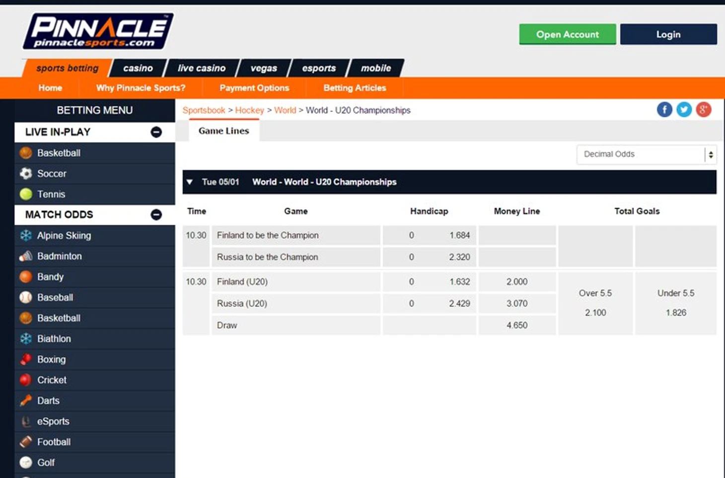 Начнём с разбора прематча, или ставок по линии.