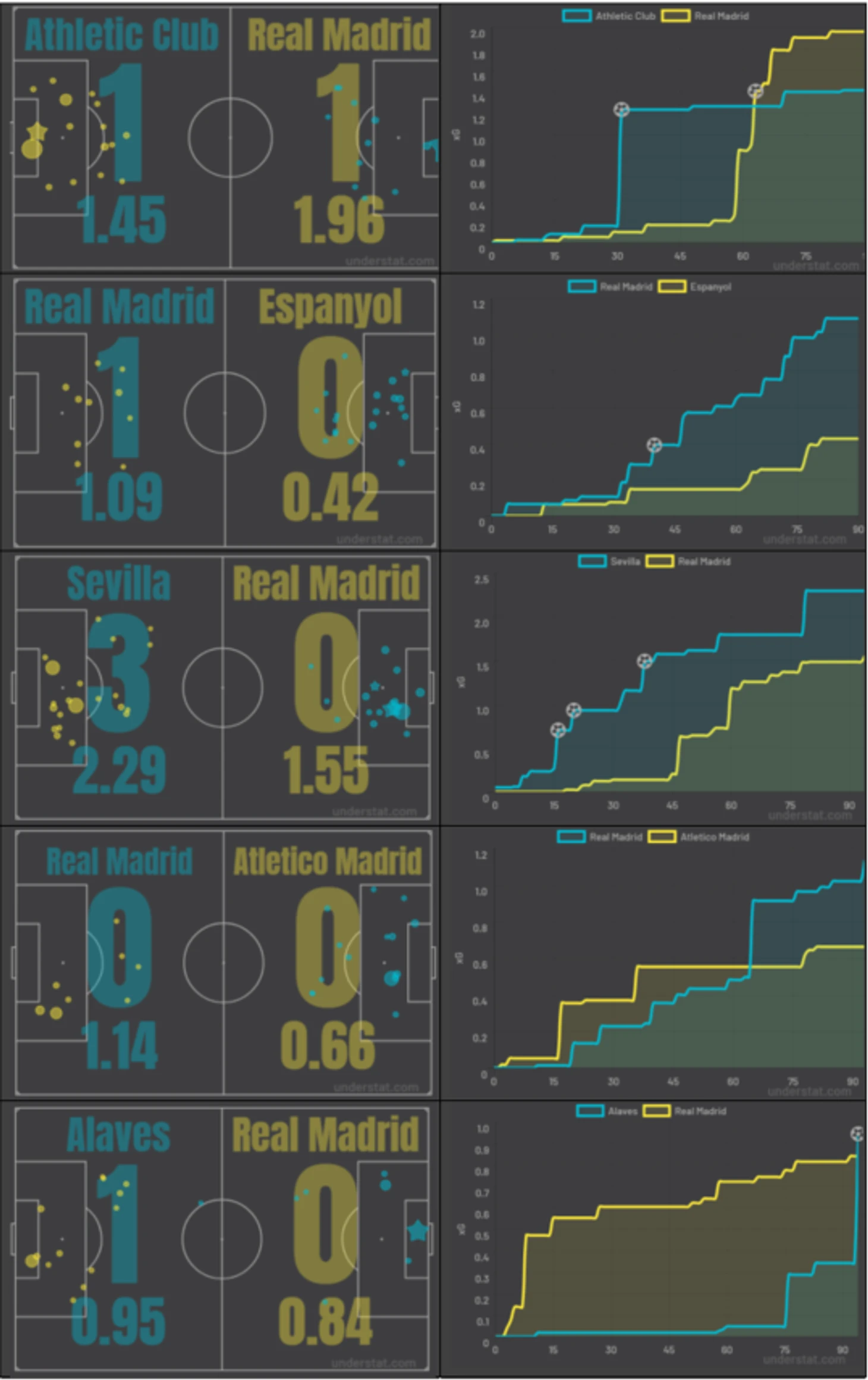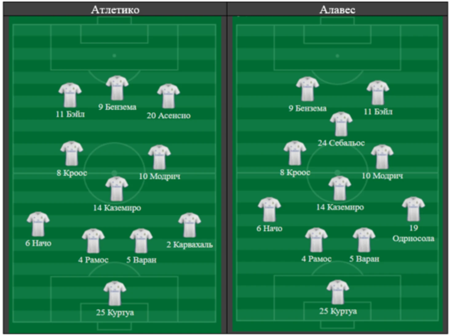 Вишенкой на торте и апофеозом последних событий стало поражение от «Алавеса». Лопетеги понимал, что нужно что-то менять, нужно уменьшать амплитуду шатания стула под собой, пока он не развалился. Хулен вернулся к схеме 4-4-2 с ромбом в центре, но так как Иско до сих пор не восстановился под нападающими тренер решил использовать Себальоса. В Дани Лопетеги очень верит, но сам Дани пока не блещет, хотя по потенциалу это игрок самого высокого уровня с техникой, пасом, видением поля и самоотдачей, но пока сырой. Лучше всего он себя проявил в игре с «Атлетико», выйдя на замену и добавив скорости своей команде. В поединке с «Алавесом» Себальос определяющим фактором не стал, и схема без Иско не сработала. Мадридцы почти ничего не создали по xG (0,85) – это худший матч «Реала», при этом сам «Алавес» долгое время отсиживался в обороне и только после 75 минуты начал хоть что-то создавать, тем не менее единственного момента на последних секундах им хватило, чтобы вырвать победу. Мадридцы были выжаты и слабы, мало креативности, мало уверенности в себе.