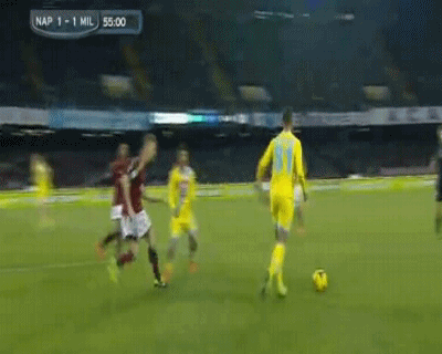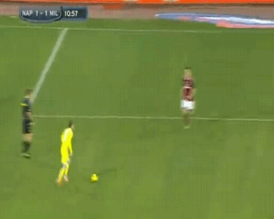 Зеедорф достаточно неожиданно с первых минут выпустил 2 новичков: на поле появились Таарабт и Эссьен. Еще более удивительно было то, что на скамейке запасных остались Кака и Монтоливо. Если у бразильца было небольшое повреждение, то отсутствие Риккардо в стартовом составе – это чисто тренерское решение. В итоге у «Милана» были очевидные проблемы с передвижением мяча в центре поля, ни Де Йонг, ни Эссьен не являются дирижерами атак. Майкл хотя и выполнил больше всех пасов в своей команде – 63, изобретательности в его действиях явно не хватало. Эссьен ограничился 1 ударом, 2 обостряющими передачами, 3 обводками и 2 заработанными на себе фолами. У его партнера по опорной зоне дела с созиданием обстояли еще хуже, он кроме 48 пасов и 3 заработанных на себе штрафных, так ничем и не запомнился. Что касается оборонительных действий, то и здесь опорники «Милана» не преуспели. На их счету 1 перехват, 4 отбора, 1 заблокированный удар и 2 выноса, и это на двоих, для сравнения у Инлера и Жоржиньо набралась куда более внушительная статистика: 7 перехватов, 4 отбора и 2 выноса. Таким образом, можно констатировать, что центр поля «Милан» с треском проиграл, не говоря о том, что никто и не думал закрывать Инлера, ставшего одним из главных творцов победы «Наполи». Сначала Гекхану дали спокойно пробить с дальней дистанции, подкат Де Йонга только ввел в замешательство голкипера и придал мячу совершенно сумасшедшую траекторию.