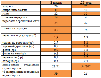 Участие Диего Косты в поединке пока находится под вопросом, но если он все-таки сможет сыграть, то это заметно усилит переднюю линию «Атлетико». Бензема на фоне бразильского испанца – это более командный игрок. Карим отметился 14 голевыми передачами (против 4), он точнее играет в пас (83% против 76%) и создает больше моментов для партнеров (1,9 против 1,3). В то же время Коста лучше справляется с непосредственными обязанностями центрального нападающего. Он забил на 13 мячей больше, также он чаще угрожает воротам соперников (3,2 удара против 2,7) и не боится брать инициативу в свои руки. Диего в среднем по 1,8 разу успешно применяет дриблинг и зарабатывает на себе по 3,1 фолу.