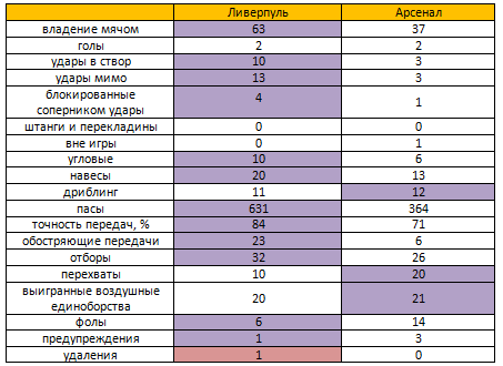 «Ливерпуль» - «Арсенал». Статистический анализ матча