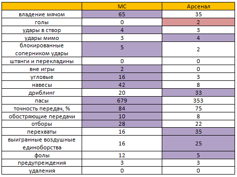 Для сравнения «Арсенал» точностью, конечно, не отличался: всего 3 в створ, зато реализация не подвела – 2 гола.