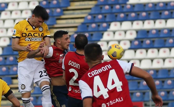 В другой встрече дня "Кальяри" и "Удинезе" также сильнейшего не выявили. Украшением матча стал дальний удар со штрафного защитника сардинийцев Хариса Ликоянниса, открывшего счет на 27-ой минуте первого тайма. Фриульцы ответили только во второй половине встречи. Сыграла тренерская замена - вышедший на поле форвард гостей Кевин Ласанья отличился на исходе часа и принес очко своей команде. "Кальяри" уже шесть матчей подряд не может победить, а "Удинезе" столько же не проигрывает.