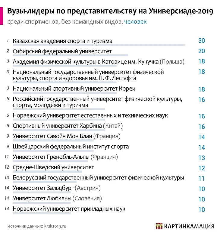 Автор Aktavian Какие вузы лидируют по количеству спортсменов на Универсиаде-2019
