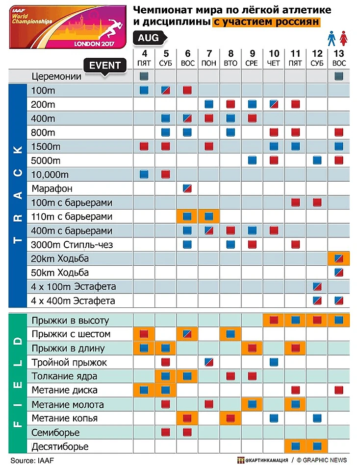 Расписание чемпионата мира по лёгкой атлетике 2017