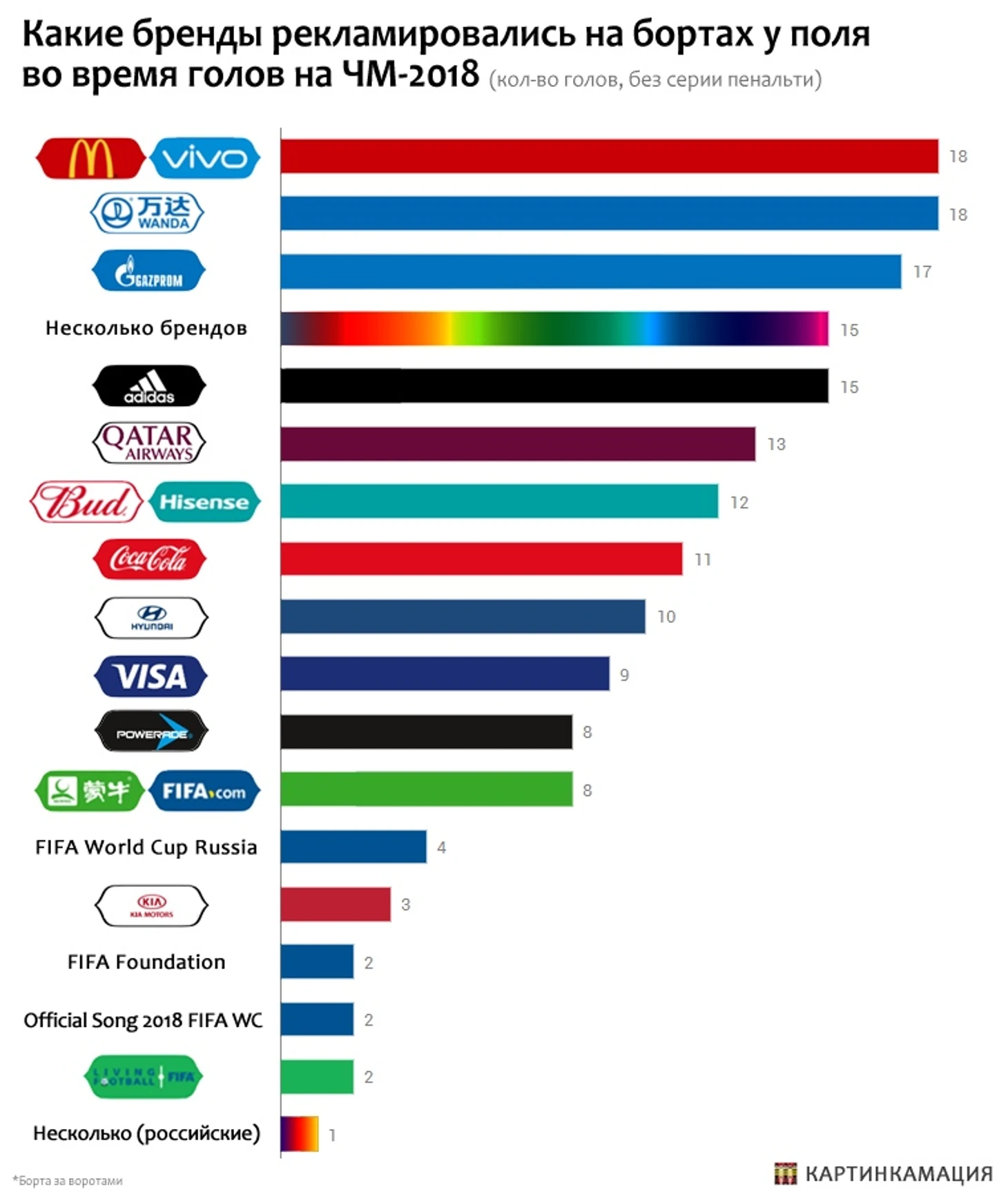 ЧМ-2018: Чью рекламу на бортах чаще всего показывали во время голов
