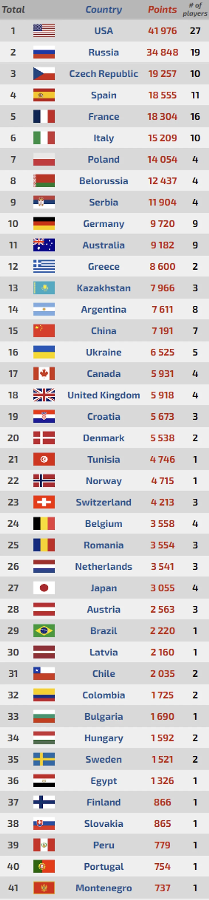 Какая страна сильнее всех в теннисе прямо сейчас?