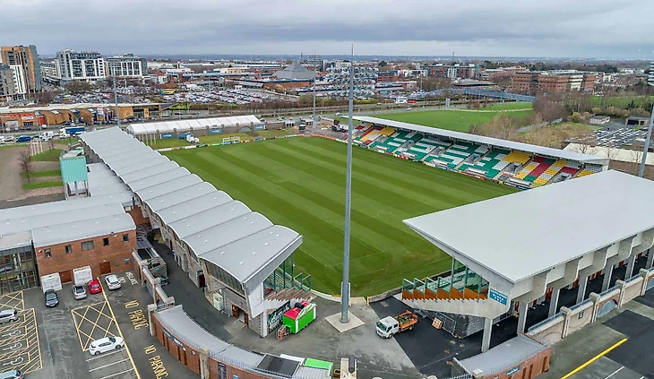 «Шэмрок Роверс» примет в Дублине албанскую «Теуту». На ирландском стадионе есть трибуна лишь за одними воротами.
