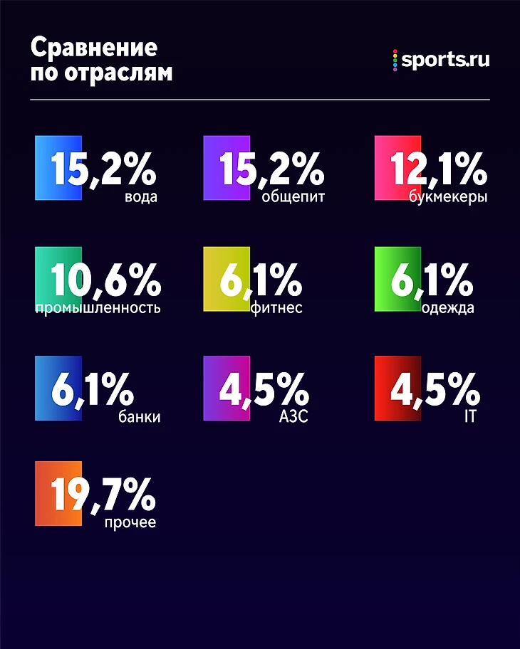 Есть несколько отраслей, которые можно назвать нетипичными в 2022-м. Так по одному клубу имеют действующие соглашения с кинотеатром, такси, полиграфией, изготовителем шин, гипермаркетом, логистической компаний и школой английского языка.