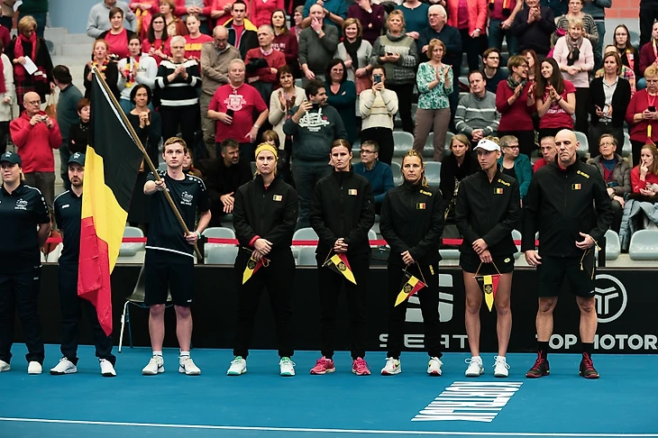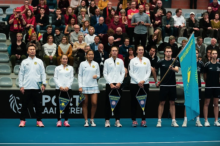 Сегодня в бельгийском Кортрейке состоялась церемония открытия отборочного этапа Кубка Федерации между Бельгии и Казахстана. После церемонии, начались первые игры отбора, от Бельгии выступила Элиза Мертенс, от Казахстана была заявлена Зарина Дияс.