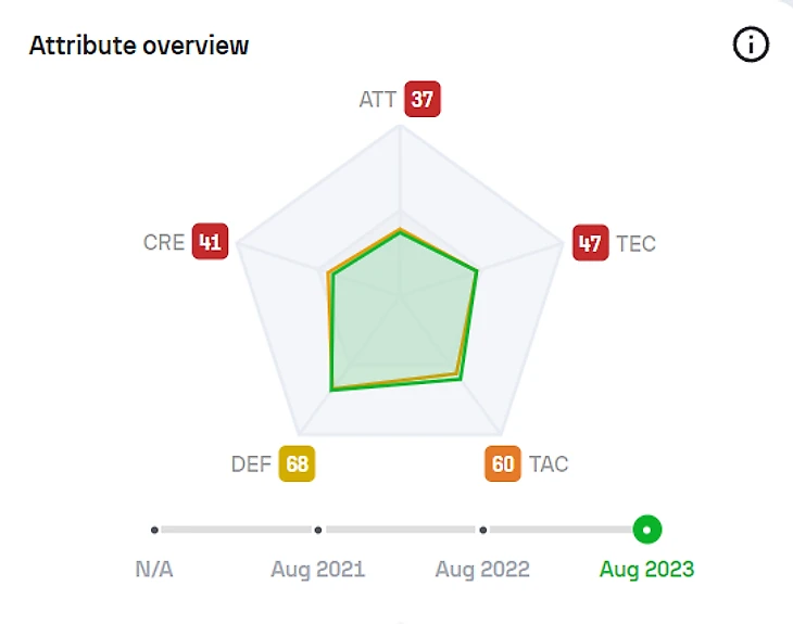 Любит начинать атаки длинными передачами.Тут есть и минус - потери остроты, соответственно потеря контроля мяча во владении.