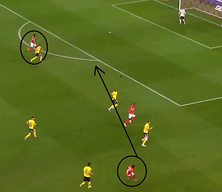 Здесь просто респект Крису,поборолся, не упал, отдал на Николсона, который удвоил счет.