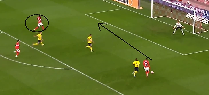 Далее Руслан неплохой передачей заставляет Мартинса ускориться