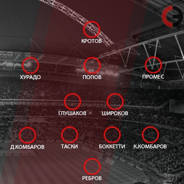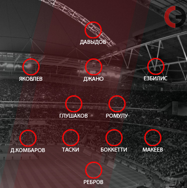 "Спартак" (Москва): Ребров, К. Комбаров (Макеев, 61), Боккетти, Таски, Д. Комбаров, Промес (Озбилис, 72), Глушаков, Широков (Ромулу, 61), Попов (Ананидзе, 72), Хурадо (Яковлев, 61), Кротов (Давыдов, 46).