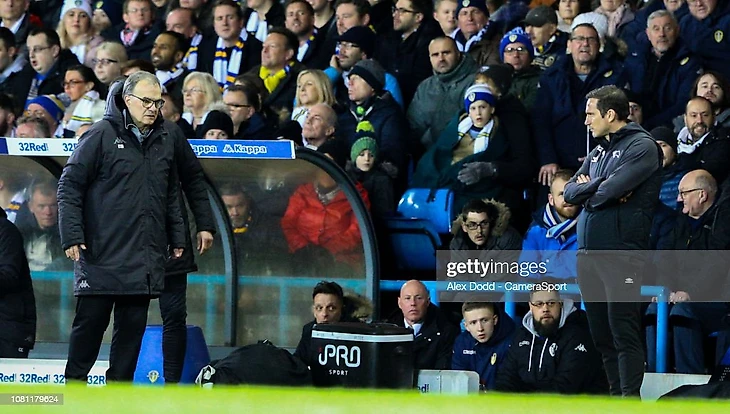 Первое поражение бывший «синий» потерпел во втором туре Чемпионшипа, проиграв «Лидс Юнайтед» Марсело Бьелсы (1:4), это была сильная пощечина молодому Фрэнки от более опытного специалиста. Как и Лэмпард, Бьелса обратил на себя внимание общественности, прежде всего великолепным выступлением своей команды в лиге. После 29 туров «Лидс» занимает первое место в лиге, опережая команду Фрэнка (6 место) на 11 очков, правда у «Дерби» матч в запасе.