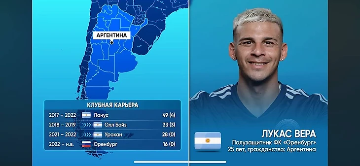 Кратко об игроке и чем он может помочь Локомотиву. Лукас Вера аргентинский футболист, 26 лет, является полузащитником с явным уклоном в сторону атаки. Начиная с лета 2022 года выступает за ФК Оренбург, до этого успел поиграть за Ланус и Олл Бойз.