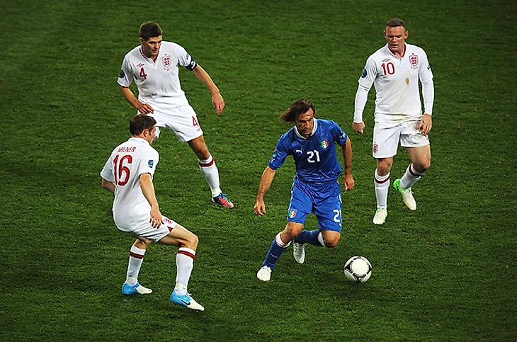 На прошлом чемпионате Европы Италия и Англия встретились в четвертьфинале, в котором итальянский профессор предложил британцам кипу нерешаемых ребусов. Английские ученые после поражения долго бились над гениальными формулами туринского бородача, а Пол Скоулз взял и выдал прямолинейный рецепт нейтрализации мозгового центра апеннинцев: приставить к Пирло Дэнни Уэлбека. Уэйн Руни не справился с этой задачей 2 года назад, теперь же за дело должен взяться более внимательный к тренерским установкам игрок. Однако и он сам только после травмы, и у итальянцев на поле будут еще парочка толковых хавбеков, умеющих быстро и остро двигать мяч, так что англичанам будет довольно сложно совсем уж закрыть волшебника «Скуадры Адзурры».