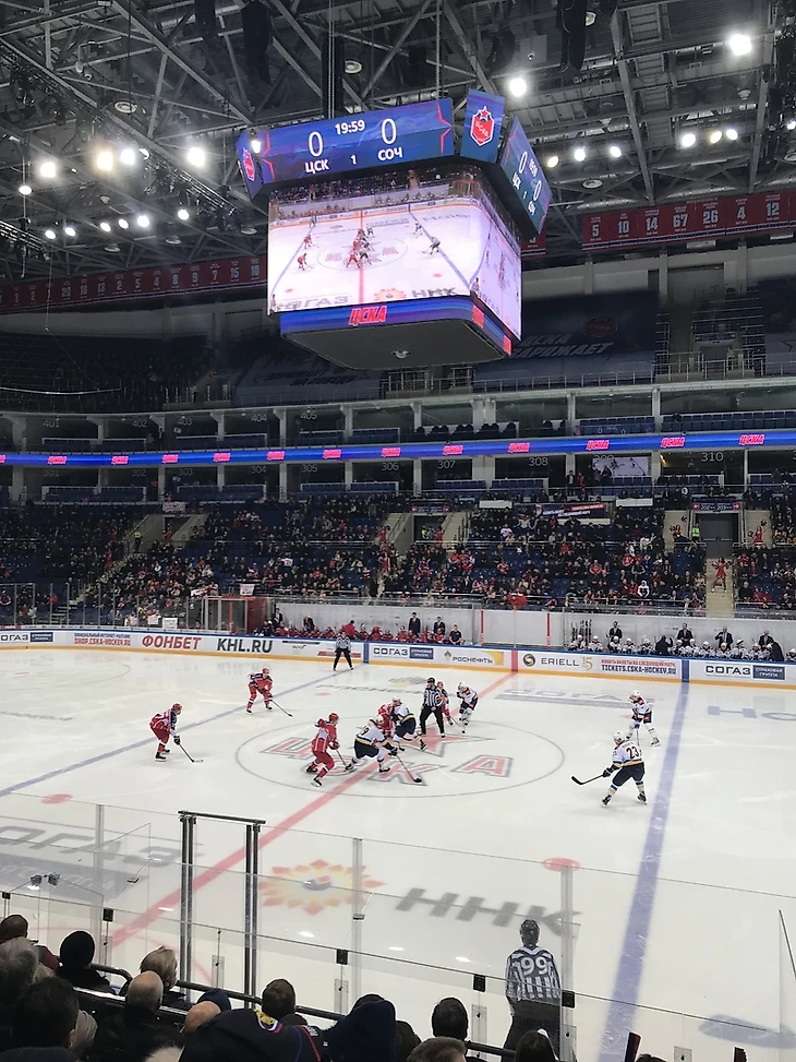 Серьезные и озабоченные лица болельщиков, очередная надежда на голевой щелчок, сменяющаяся громким разочарованием аудитории "ЦСКА Арены" - это, наверное, главные описательные характеристики, которые можно подобрать к прошедшему матчу ЦСКА - ХК "Сочи". Давно любителям красно-синих не приходилось так встревоженно наблюдать за происходящим на площадке, ибо к концу второго периода армейцы обычно забивали 2-3 шайбы в ворота соперника. В матче с "леопардами" отличиться по ходу игры удалось лишь однажды, и то, с постоянной тревогой, что "вот-вот гости сравняют счет". Очередным испытанием московских армейцев на пути установления нового лидерства в Лиге стала изнурительная игра с ХК "Сочи". Если последние несколько матчей москвичи достигали побед относительно легким путем (4-0 - "Слован", "Ак Барс" - 0-5, "Торпедо" - 0-3), то прошедшая игра стала для подопечных Игоря Никитина настоящим испытанием на прочность. "Сочи" на протяжении всего матча не позволял ЦСКА уйти в отрыв более чем на одну шайбу, при этом создавая череду опасных и неприятных моментов у ворот Ильи Сорокина. О том какими силами ЦСКА добыл победу и о личных достижениях Сорокина читайте далее.