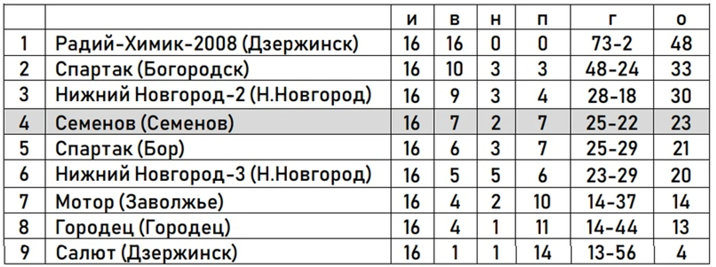 ФК Семенов — Спартак (Бор) — 2:7 (0:4)