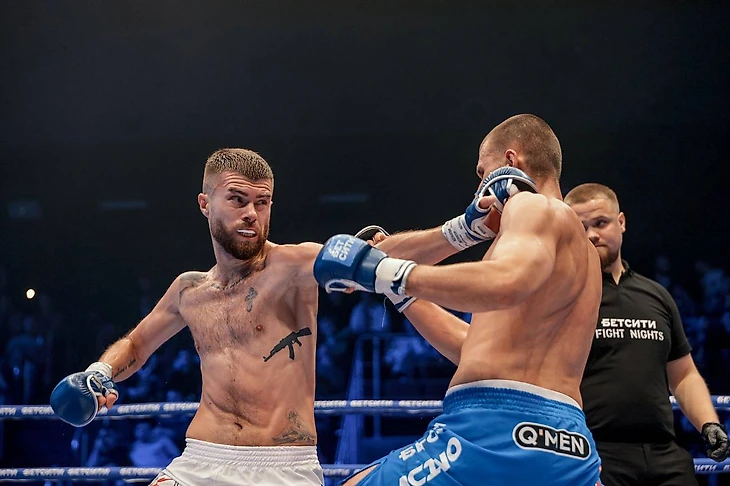 - По бою с Костей. У Кости и его соперника было огромное желание победить. Никто не хотел уступать. Обменивались хорошими лоу-киками, ударами в голову, по корпусу. Да, были, конечно, немного корявые удары, но они не сдавались и до последнего бились. 5 раундов по 2 минуты, это тоже как бы немало. Немножко уступили, я думаю, со счетом 3-2 по раундам. Минимальное преимущество.