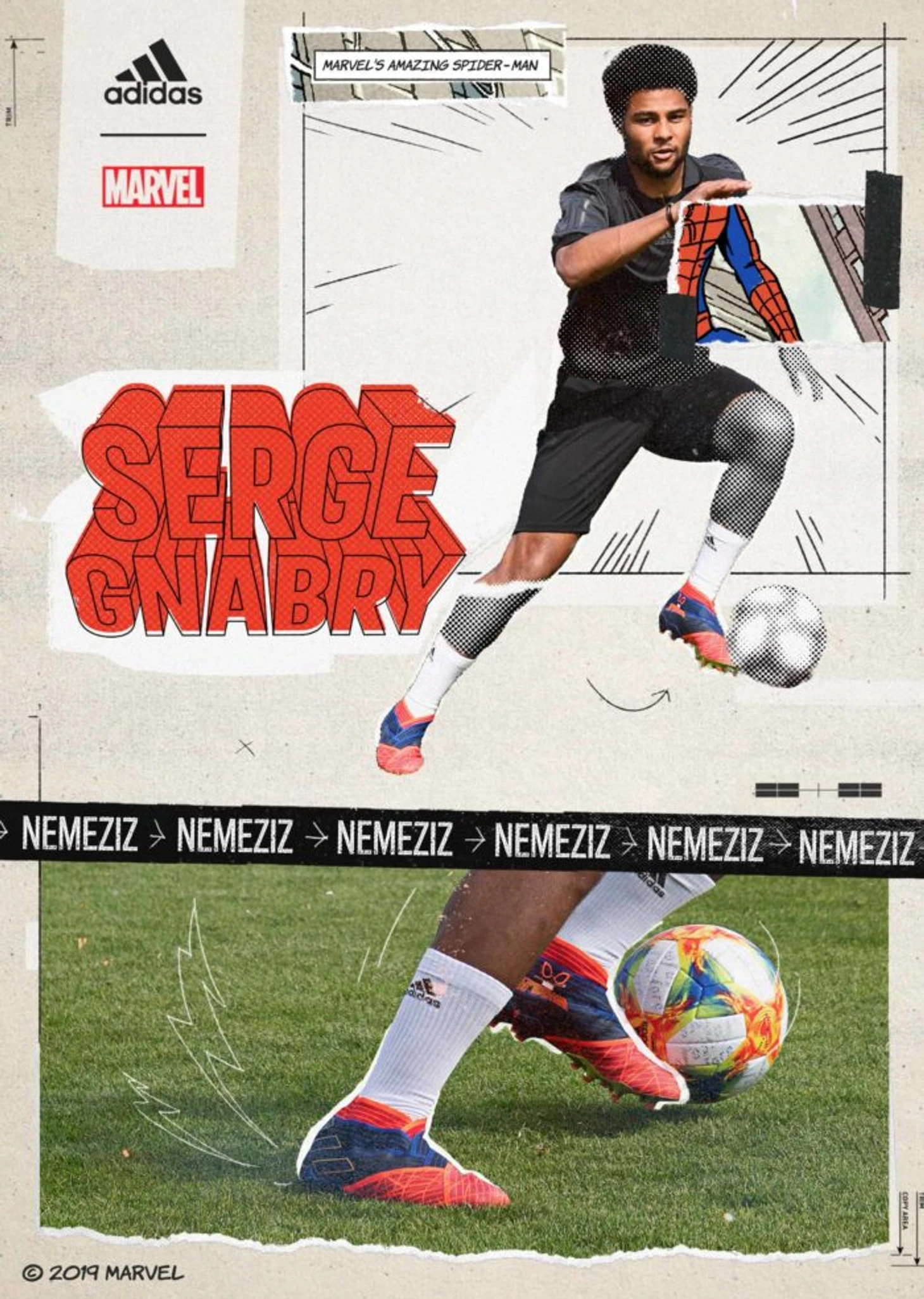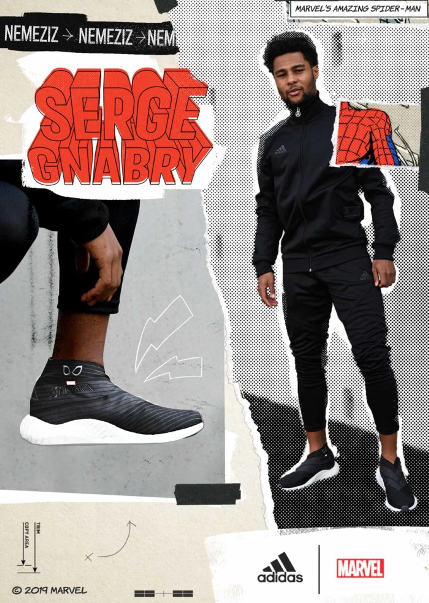Бутсы Adidas Nemeziz 19+ Marvel рекламирует вингер мюнхенской «Баварии» и сборной Германии Серж Гнабри.